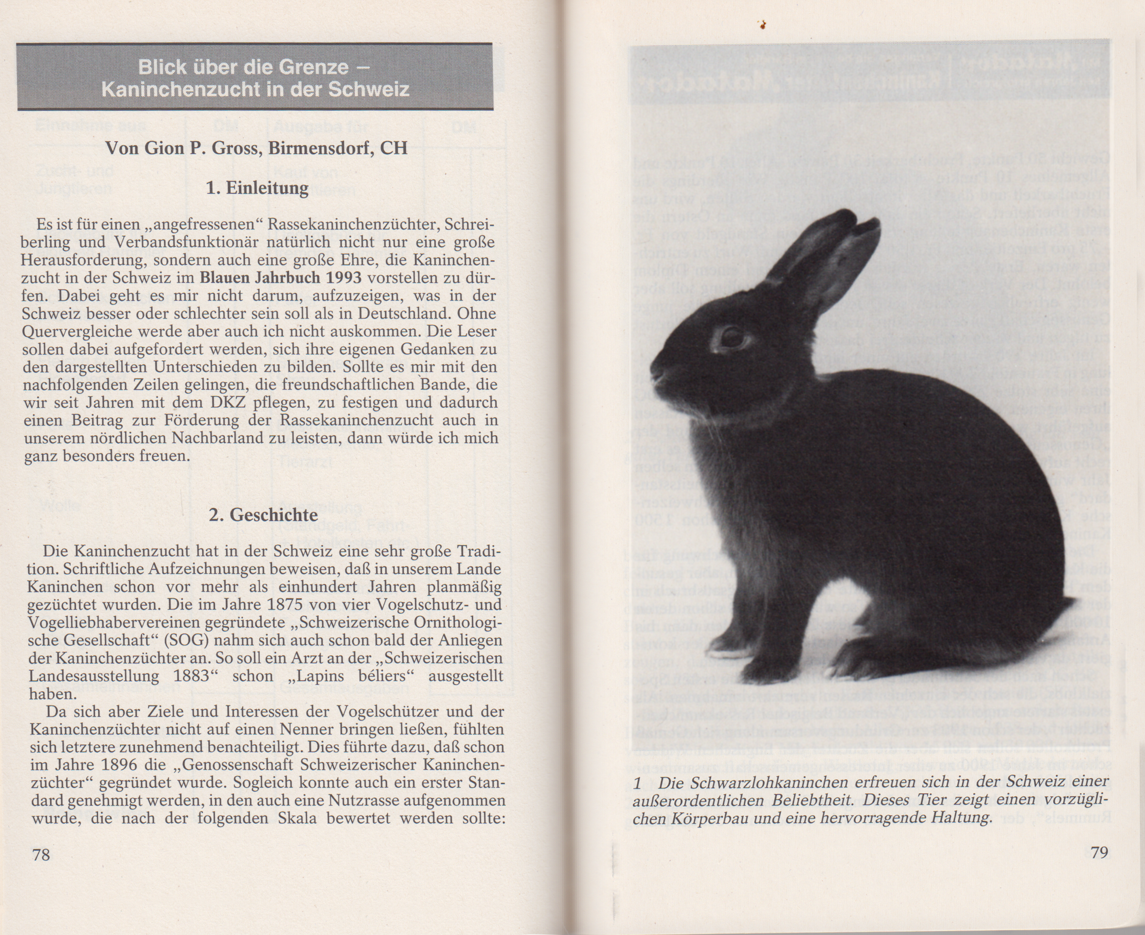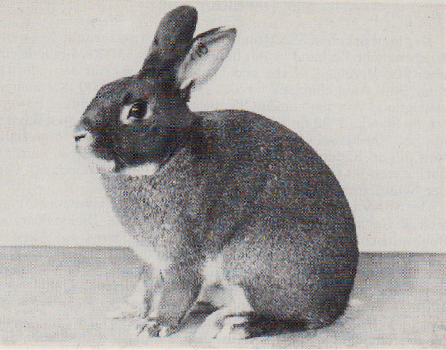 1 Die Schwarzlohkaninchen erfreuen sich in der Schweiz einer außerordentlichen Beliebtheit. Dieses Tier zeigt einen vorzüglichen Körperbau und eine hervorragende Haltung.