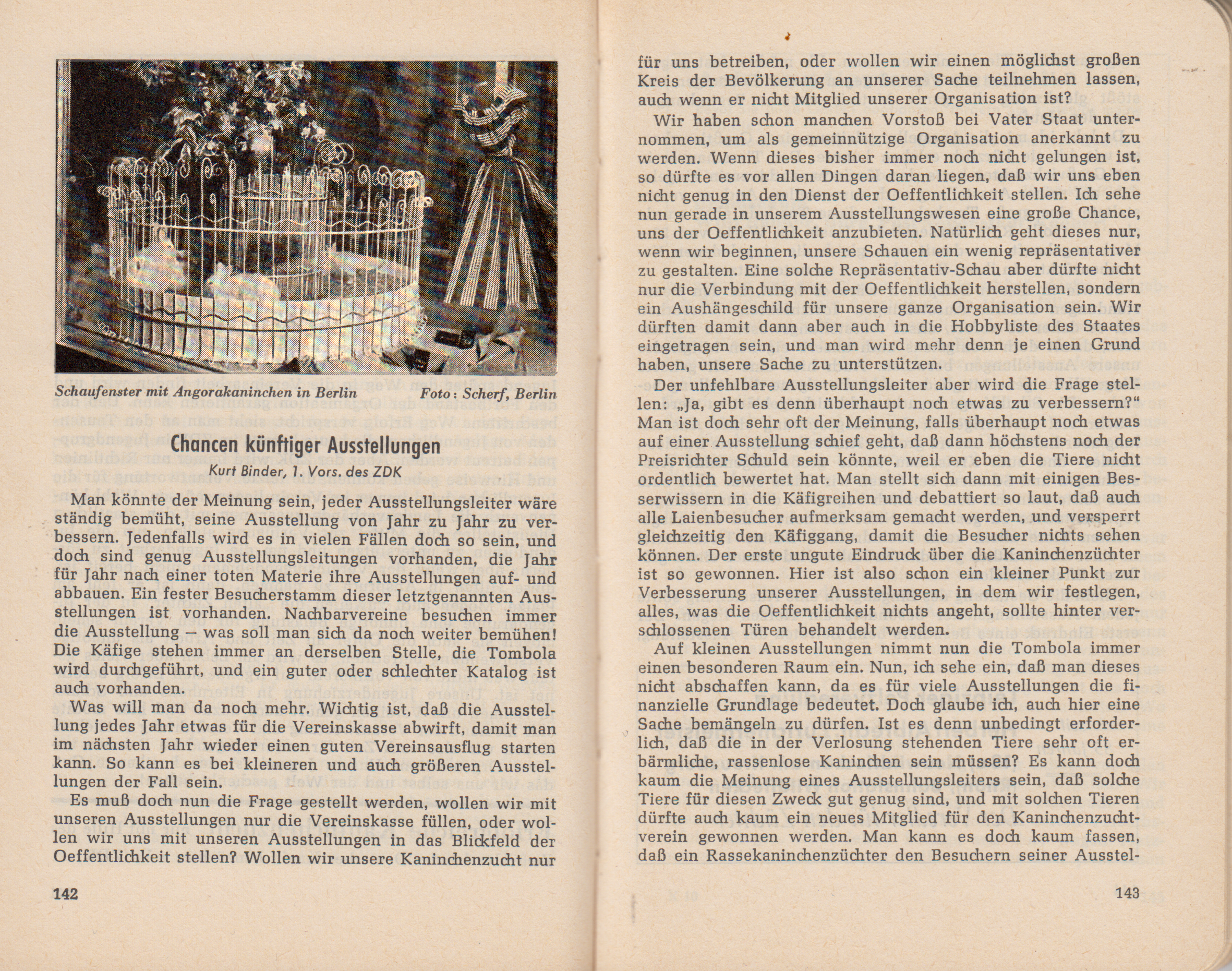 s muss doch nun die Frage gestellt werden, wollen wir mit unseren Ausstellungen nur die Vereinskasse füllen, oder wollen wir uns mit unseren Ausstellungen in das Blickfeld der Öffentlichkeit stellen? Wollen wir unsere Kaninchenzucht nur für uns betreiben, oder wollen wir einen möglichst großen Kreis der Bevölkerung an unserer Sache teilnehmen lassen, auch wenn er nicht Mitglied unserer Organisation ist?