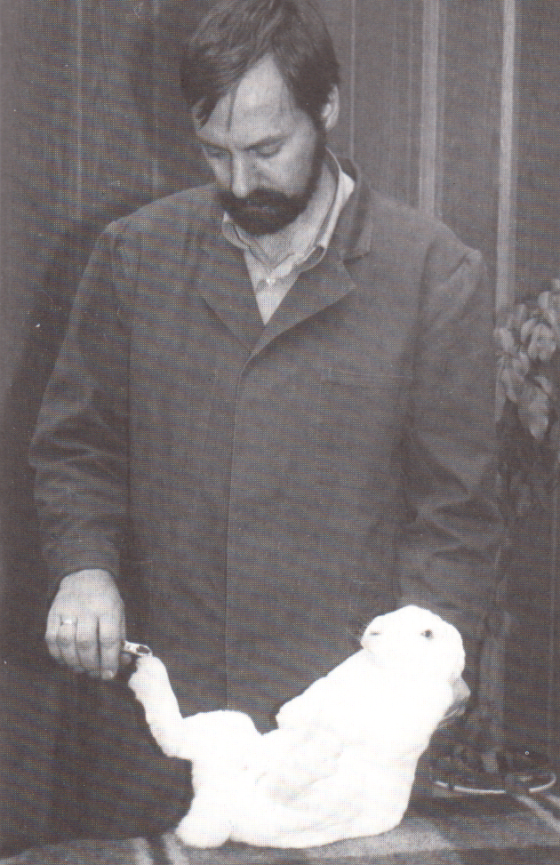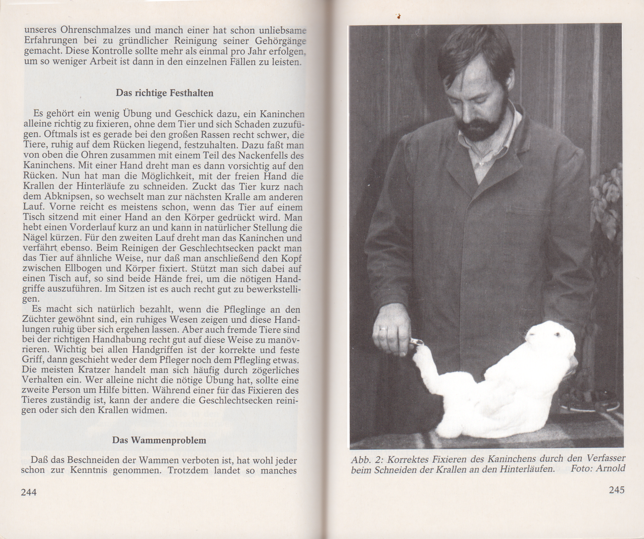 Abb. 2: Korrektes Fixieren des Kaninchens durch den Verfasser beim Schneiden der Krallen an den Hinterläufen. Foto: Arnold