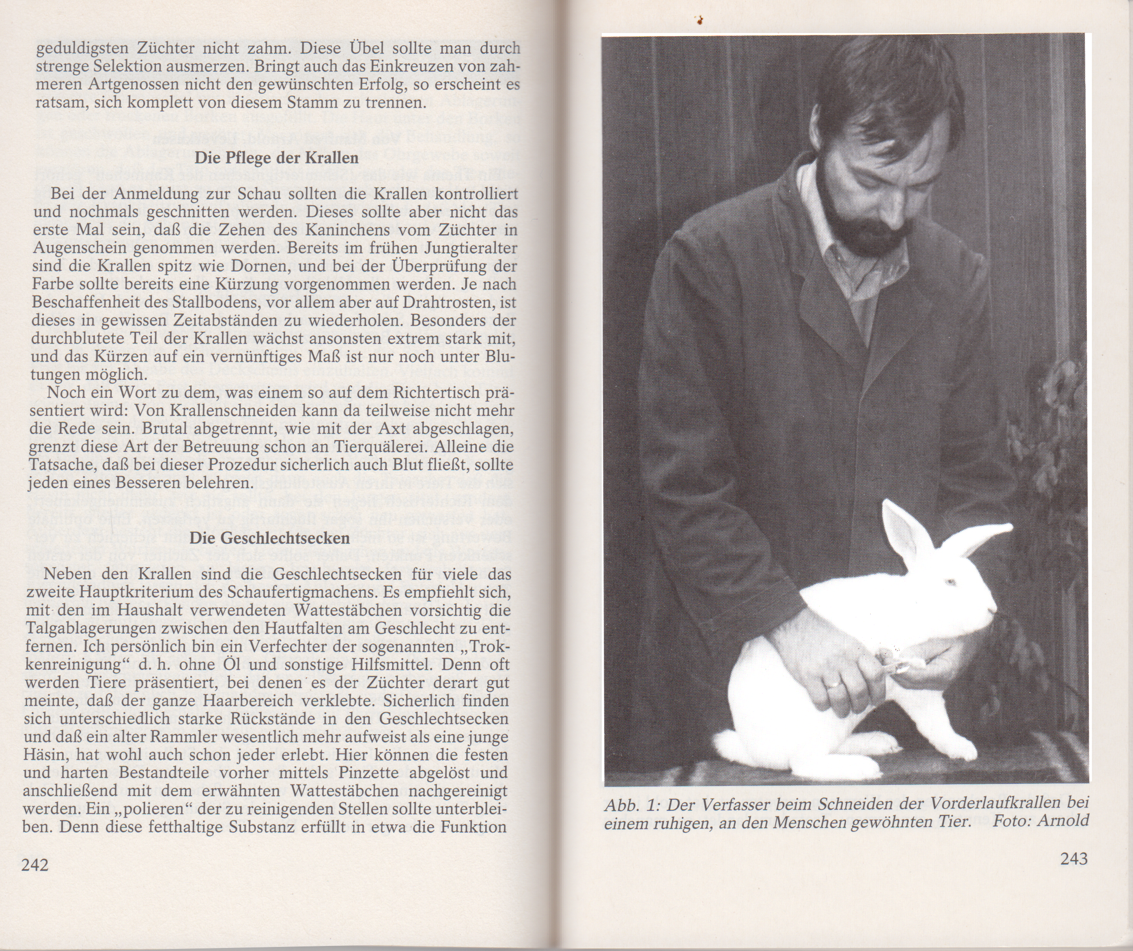 Abb. 1: Der Verfasser beim Schneiden der Vorderlaufkrallen bei einem ruhigen, an den Menschen gewöhnten Tier. Foto: Arnold