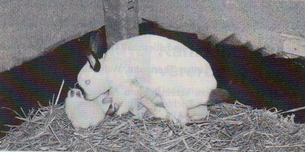 Selbst im Beisein eines fremden Stallbesuchers säugte nachmittags eine Häsin ihre Jungen im Gemeinschafts-Innengehege. Foto: L. Thormann, Waldheim